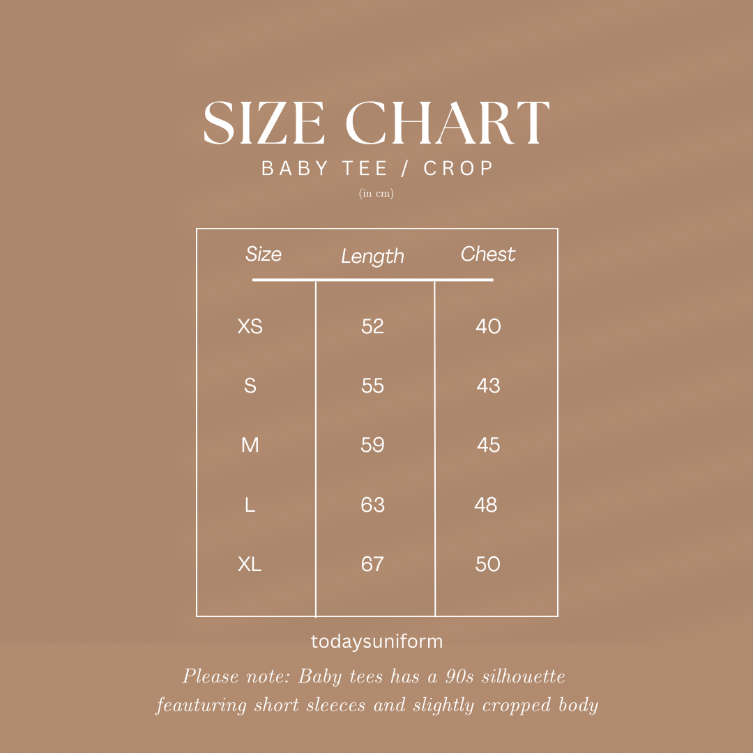 - Available in Baby Tee & Regular Classic Fit. (refer to size chart)